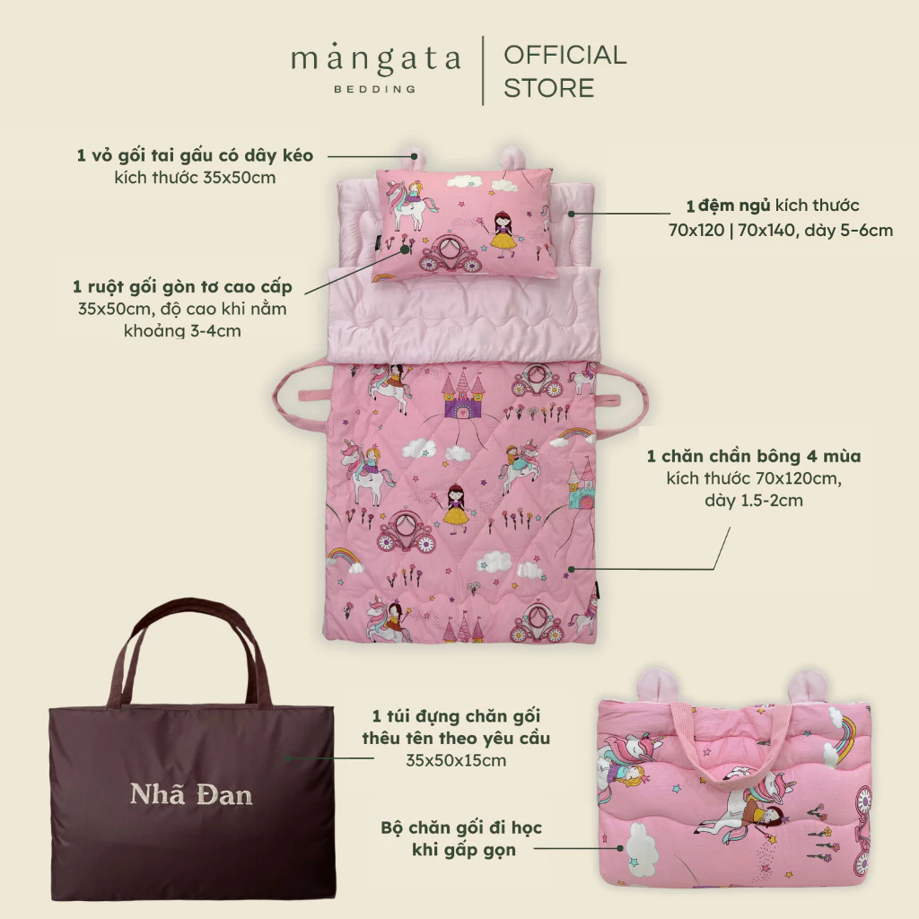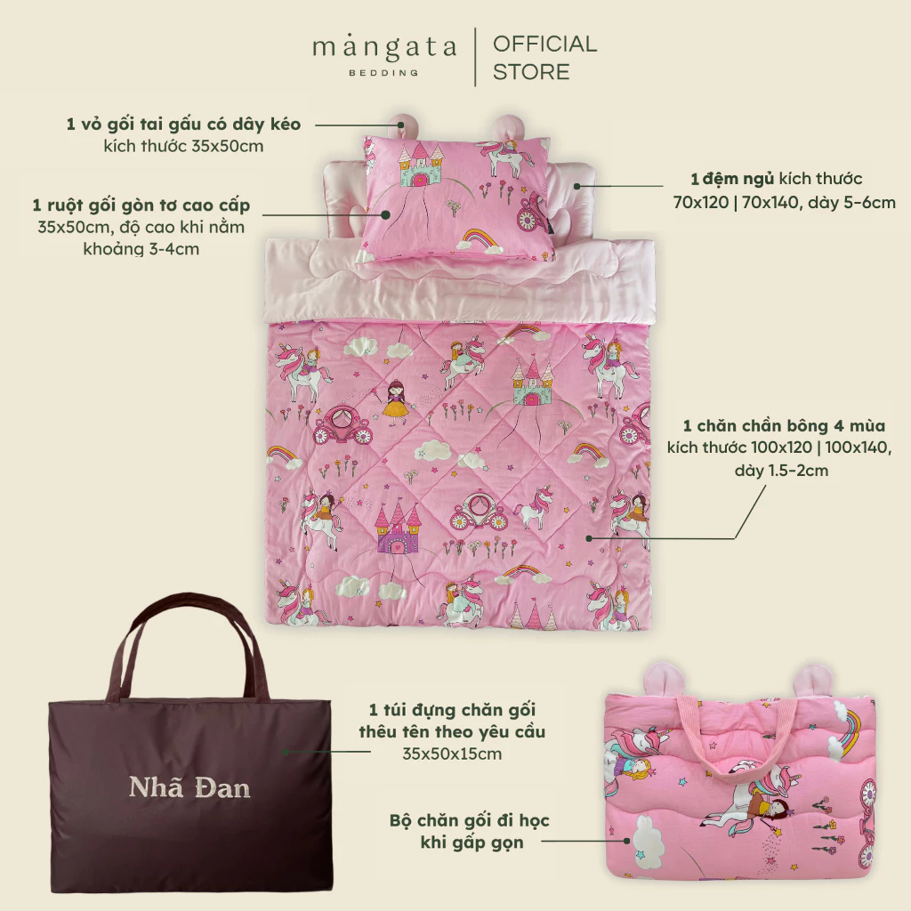 Mangata tin rằng các con sẽ ngủ thật ngon cùng với set chăn gối xinh xắn này đấy.