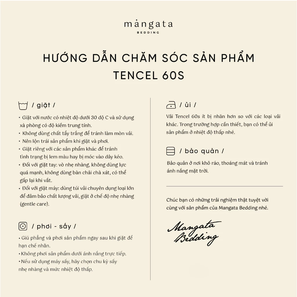 - Hướng dẫn chi tiết bảo quản sản phẩm Mangata Bedding luôn được đính kèm theo sản phẩm